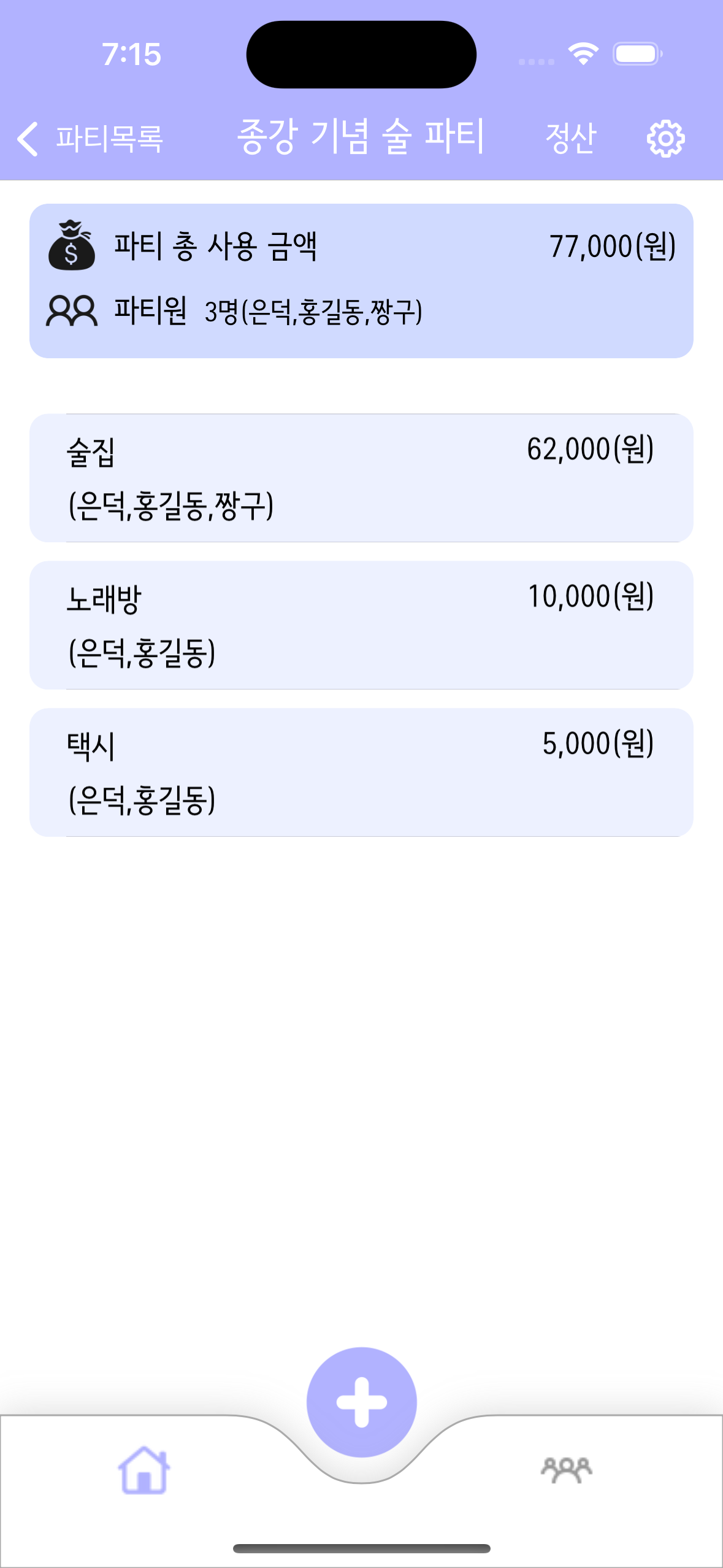 카카오페이 송금하기나 정산하기 기능을 사용하고 싶었는데 여러모로 쉽지 않아서 넣지 못하였다.