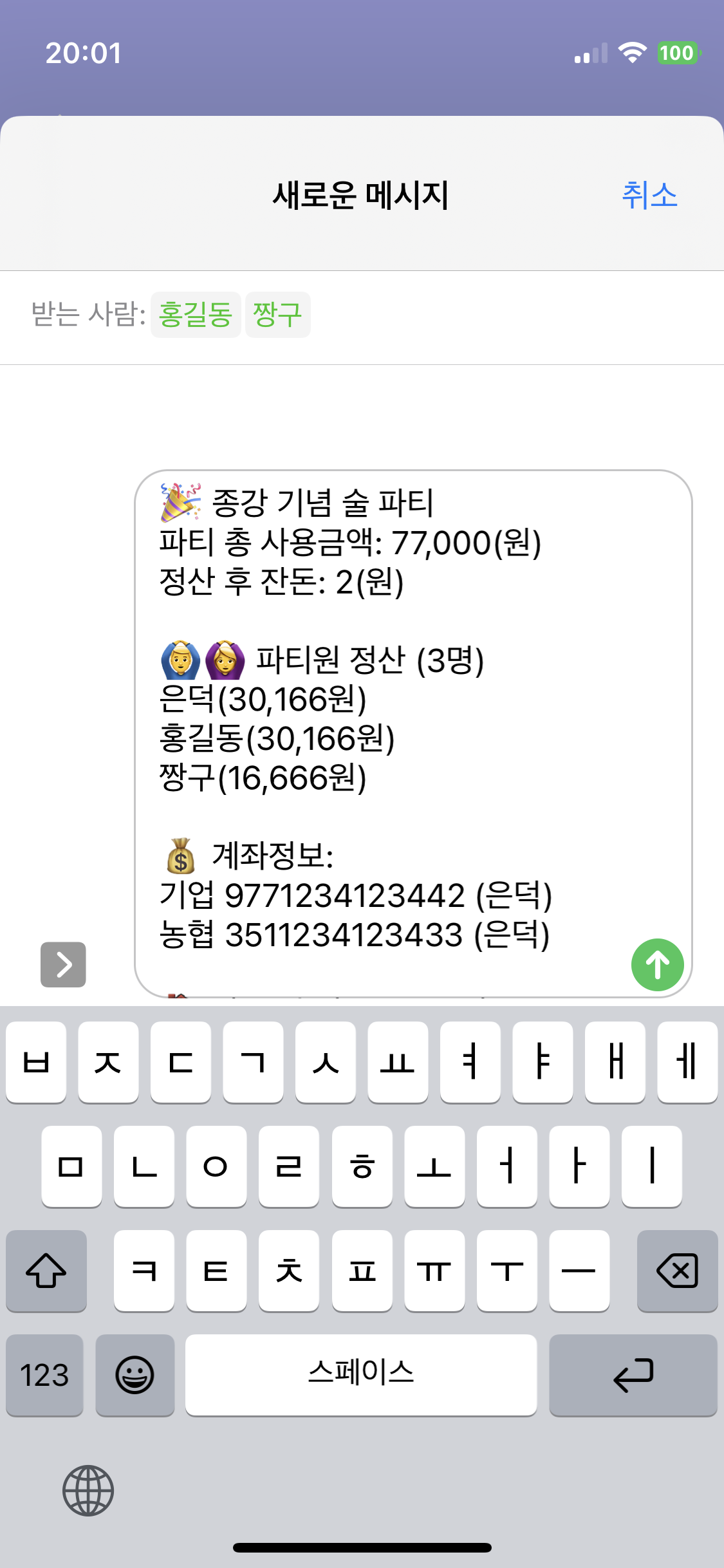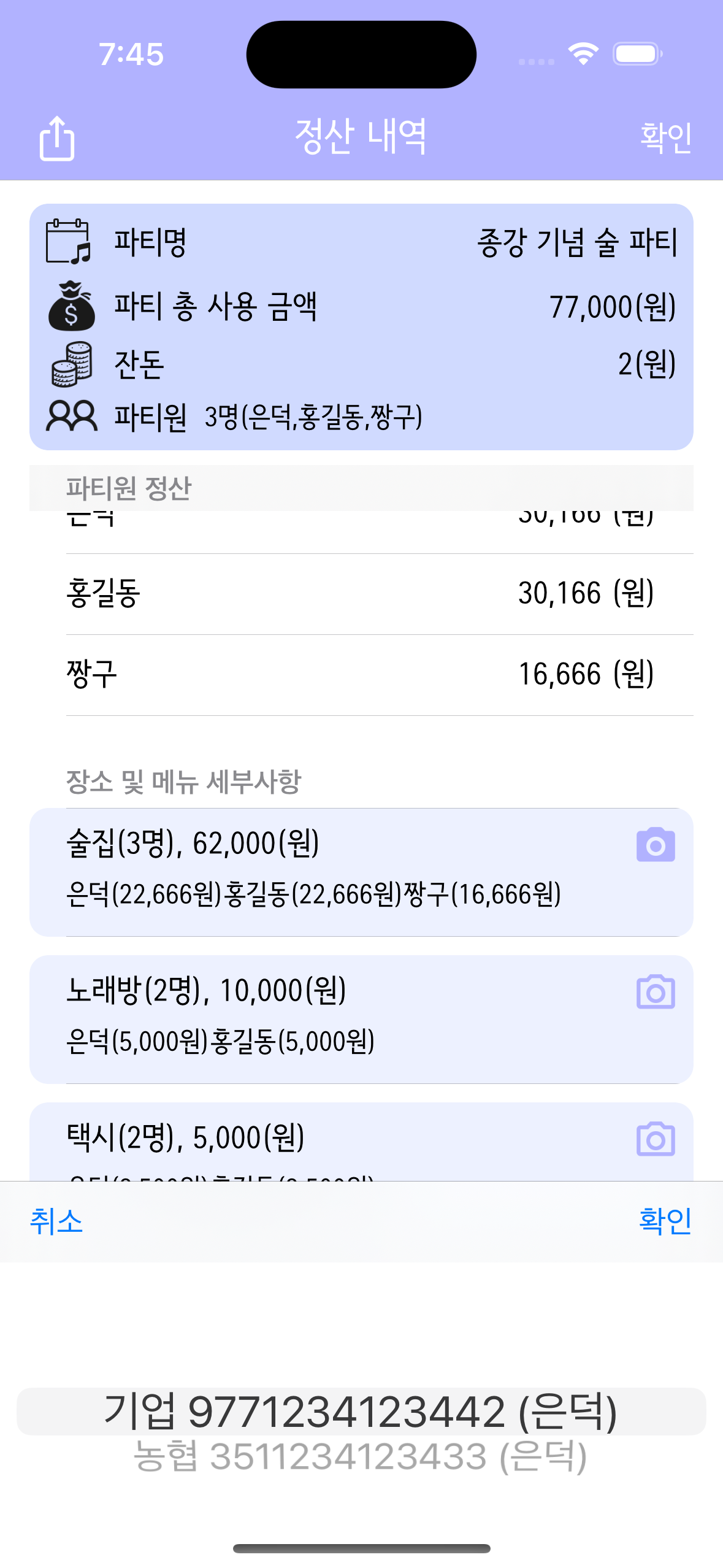 이제 정산 내역을 공유해야 하는데 그 전에 계좌 정보를 추가해 보겠다.