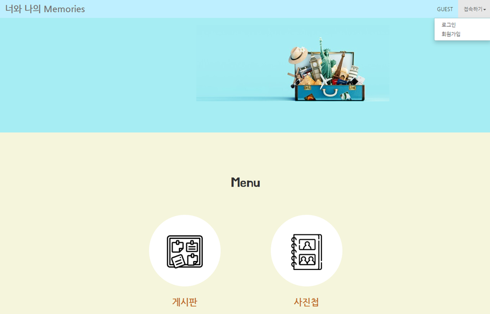 프로젝트 이름은 "너와 나의 Memories"이고 이름과 같이 서로의 추억을 공유하는 프로그램이다. (sns느낌)